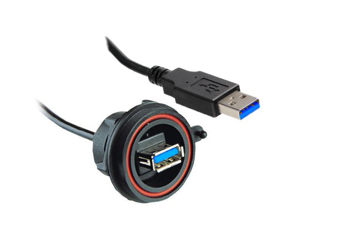 - Sealed Standard USB 3.0 Type A socket to 500mm long cable terminated in Standard USB 3.0 Type A plug