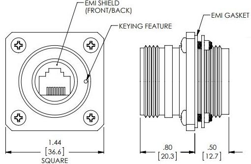 Startseite / Black Anodised Aluminium Flange Mount Connector with Cap and Mounting Hardware - Unshielded - Cat5e Female