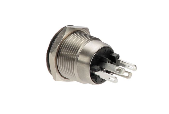 Stainless Steel Vandal Resistant Illuminated IP66 Push Button Switch MPI002 Series Red/Green LED Ring (No Resistor) 2.8mm Tab Termination