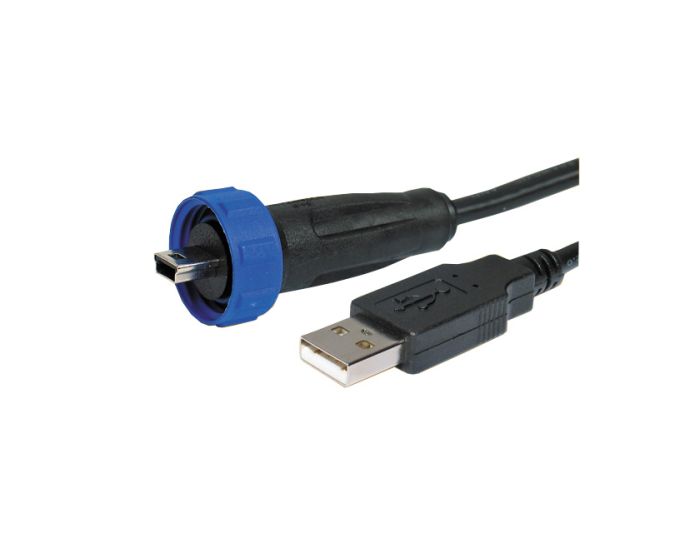 - Standard USB Type A plug to Sealed Mini USB Type B plug (part codes prefixed PX0441)
