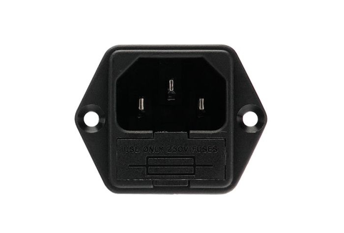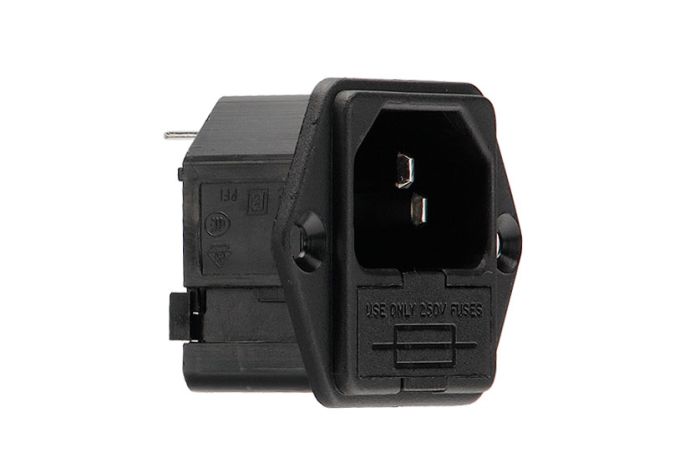 IEC Connector Flange Mount Fused Inlet PF0001 Series Black 6.3mm Tab Termination EN60 320-1 Standard Sheet C14 Class I
