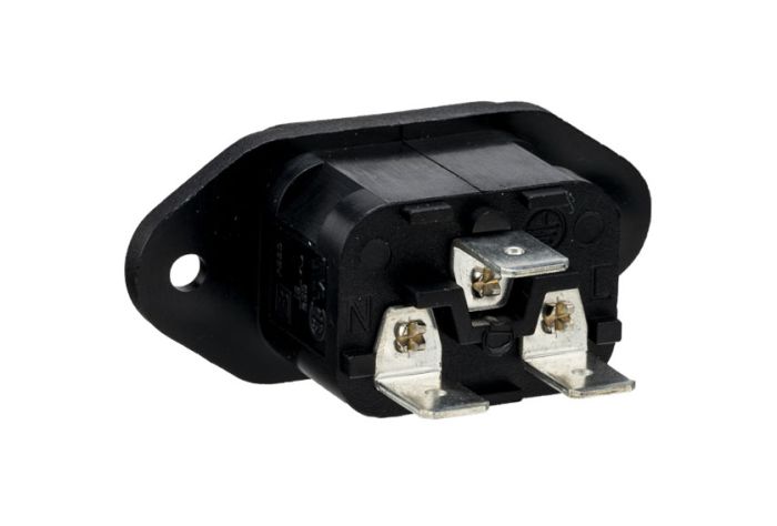 IEC Connector Flange Mount Inlet PX0580 Series Black 6.3mm Tab Termination EN60 320-1 Standard Sheet C14 Class I