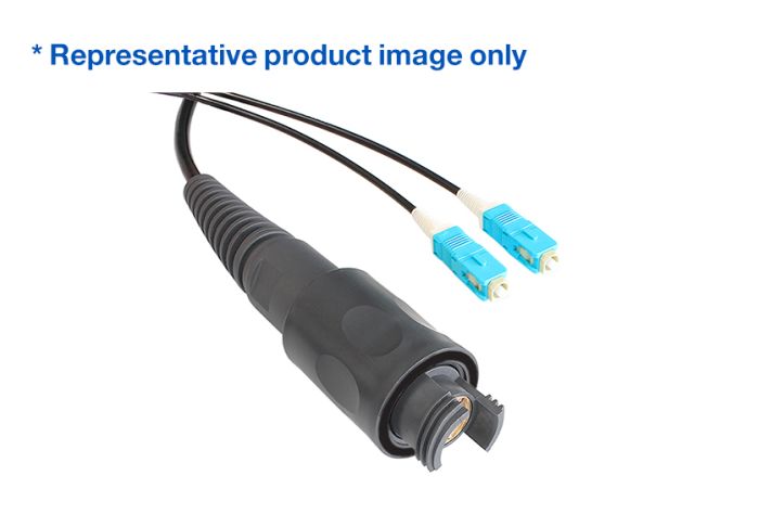 - A Terminated Plug Connector with a 2-Channel OM3 Outdoor Tactical Cable that breaks out in 2 independent cables (0.5m long) with SC Terminations - 25m Long Cable Assembly