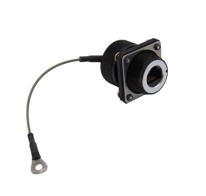 - Black Anodised Aluminium Flange Mount Connector with Cap and Mounting Hardware - Unshielded - Cat6a Female