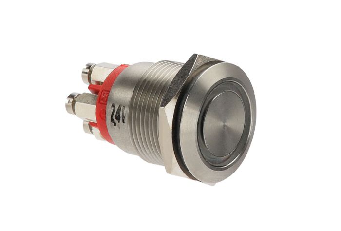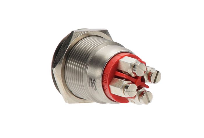 Stainless Steel Vandal Resistant Illuminated IP66 Push Button Switch MPI002 Series 24V Red LED Ring Screw Termination