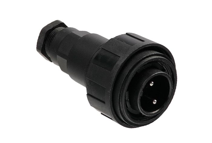 Flex Cable Connector PX0736 Range 2 Contact Plug Screw Termination (Contacts Supplied Fitted) 6mm-8mm Cable Black Insert And Gland Nut