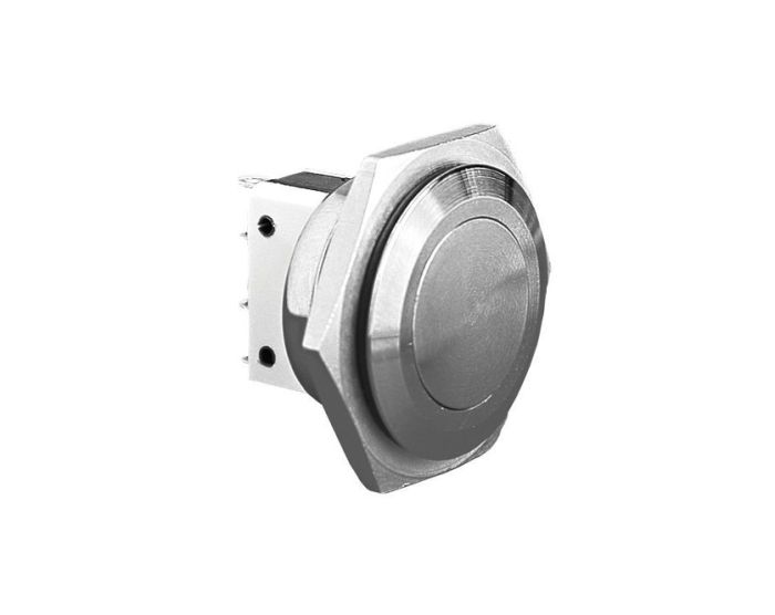 Home / Apertura pannello 19mm/25mm, Sagoma 21,5mm/28mm, Valori nominali massimi 5A 250Vac / 2A 28Vdc, Azione momentanea, Opzioni a tenuta stagna Classe IP66 e IP68 - Interruttore antivandalismo ottone cromato, Pulsante a profilo basso