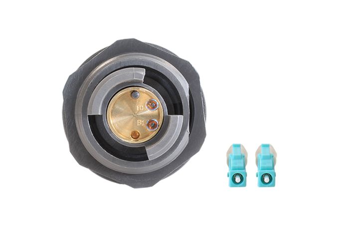 - A Terminated Jam Nut Bulkhead (JNBH) Connector with 2 (OM1) LC terminated independent cables - 2m Long Cable Assembly
