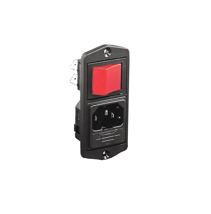 Vertical Power Entry Module 81.5mm Top Fixing Flange Mount C14 Cold Condition Inlet Integral Twin Fused (PF0033) 6.3mm Tab Termination A0220 Filter (2A PS26/A L/C v2) Large Red Indicator