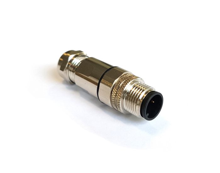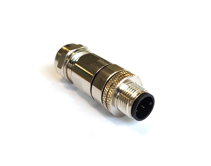 ホーム / M12コネクター、オス、ストレート、ニッケルメッキ真鍮、インラインフレックスボディ、はんだ付けターミナル