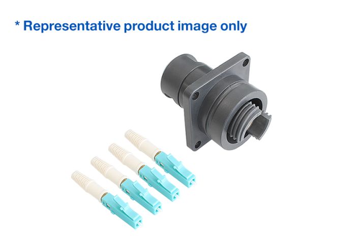 - A Terminated Flange Mount Bulkhead (FMBH) Connector with 4 (OM3) LC terminated independent cables - 5m Long Cable Assembly