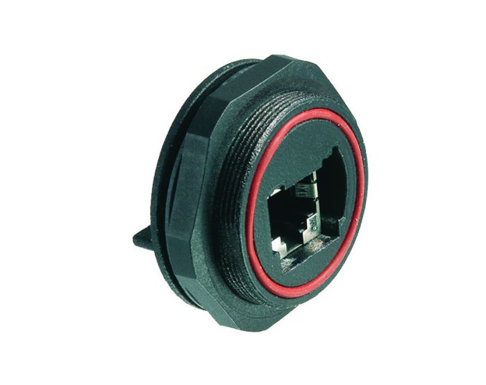 Rear Panel Mount Connector PX0839 Series CAT5e Shielded Socket Straight PCB Pins