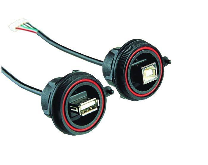 Front Panel Mount Leaded USB 2.0 Connector PX0843 Series Sealed A Socket Front of Panel to 5 Way Crimp Connector