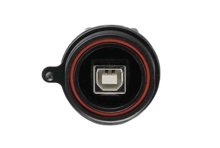 Front Panel Mount Leaded USB 2.0 Connector PX0843 Series Sealed B Socket Front of Panel to 5 Way Crimp Connector