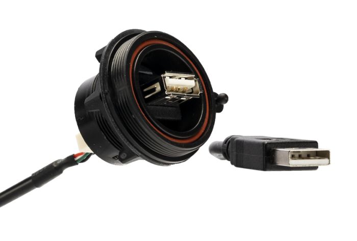 - Sealed Standard USB 2.0 Type A socket to 500mm long cable terminated in Standard USB 2.0 Type A plug