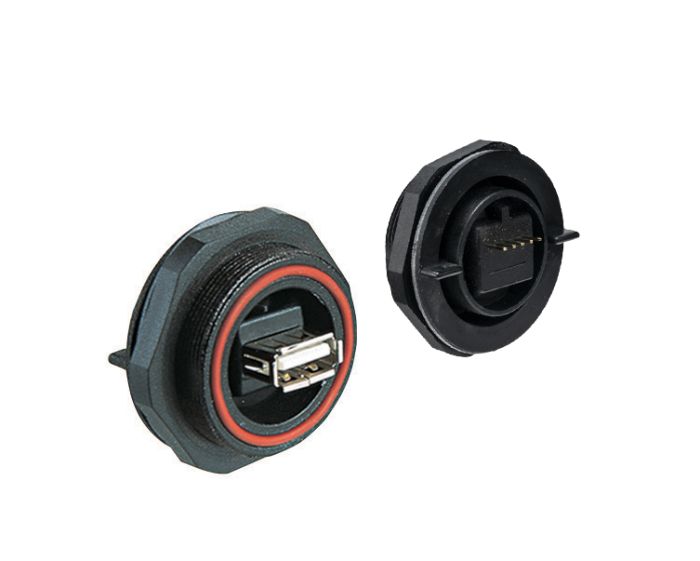 Rear Panel Mount USB 2.0 Connector PX0845 Series Sealed A Socket Front of Panel to PCB Mount Contacts