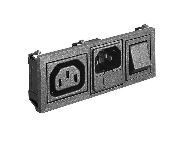 - C14 Cold Condition Inlet with choice of Single Integral Fuse (PF0011) or Twin Integral Fuse (PF0033) combined with choice of Sheet F Shuttered (PX0783) or Non-Shuttered (PX0695) Outlet:
