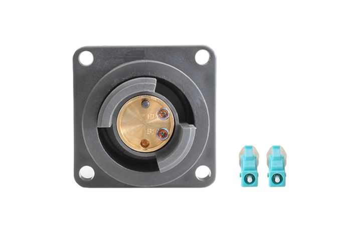 - A Terminated Flange Mount Bulkhead (FMBH) Connector with 2 (OM1) LC terminated independent cables - 5m Long Cable Assembly