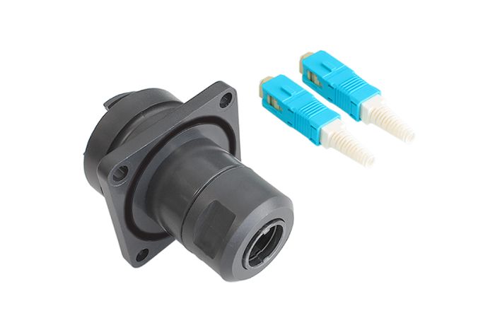 • A Terminated Flange Mount Bulkhead (FMBH) Connector with 2 (OM1) SC terminated independent cables - 2m Long Cable Assembly
