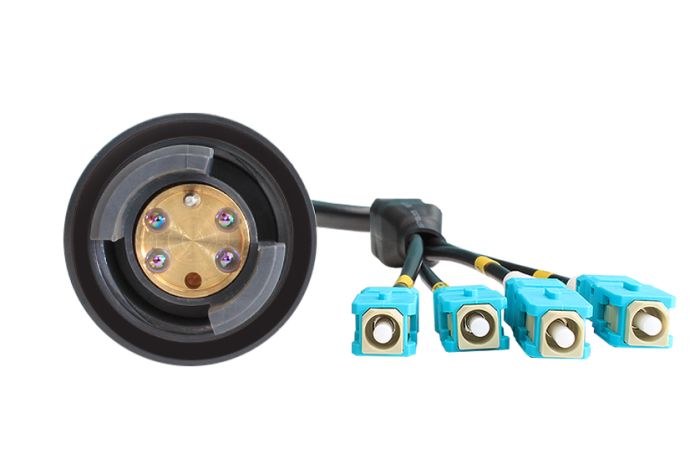 • A Terminated Plug Connector with a 4-Channel OM1 Outdoor Tactical Cable that breaks out in 2 independent cables (0.5m long) with SC Terminations - 100m Long Cable Assembly