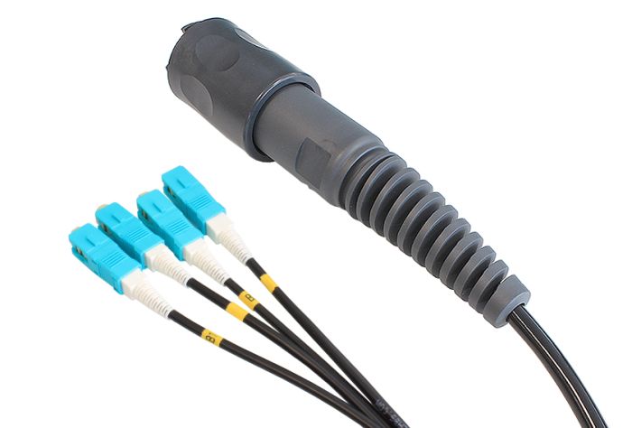 - A Terminated Plug Connector with a 4-Channel OM1 Outdoor Tactical Cable that breaks out in 2 independent cables (0.5m long) with SC Terminations - 300m Long Cable Assembly