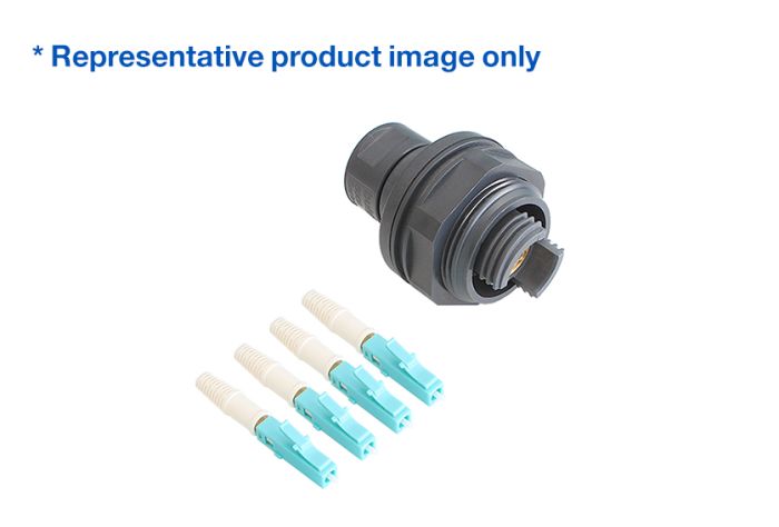 - A Terminated Jam Nut Bulkhead (JNBH) Connector with 4 (OM3) LC terminated independent cables - 1m Long Cable Assembly