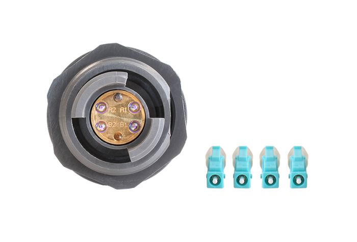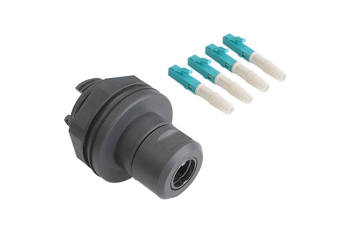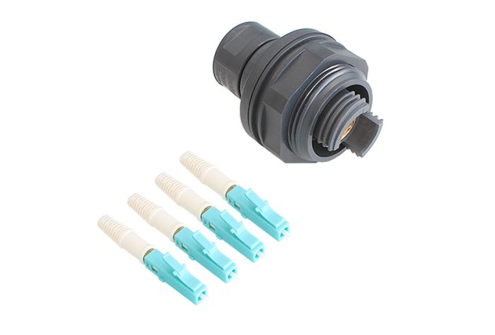 • A Terminated Jam Nut Bulkhead (JNBH) Connector with 4 LC terminated independent cables