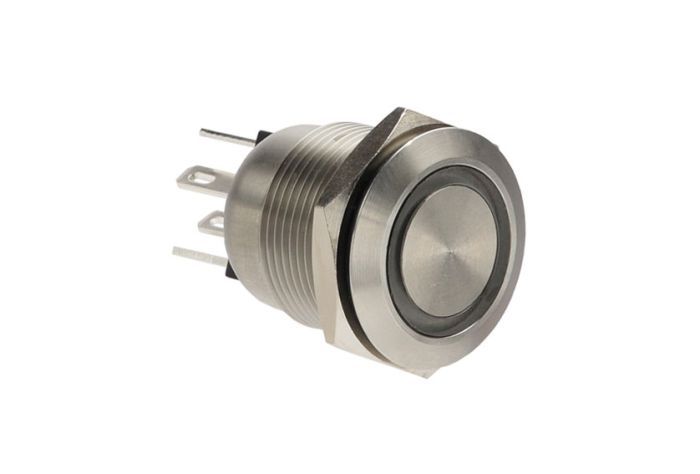 Stainless Steel Vandal Resistant Illuminated IP66 Push Button Switch MPI002 Series Green/Blue LED Ring (No Resistor) 2.8mm Tab Termination