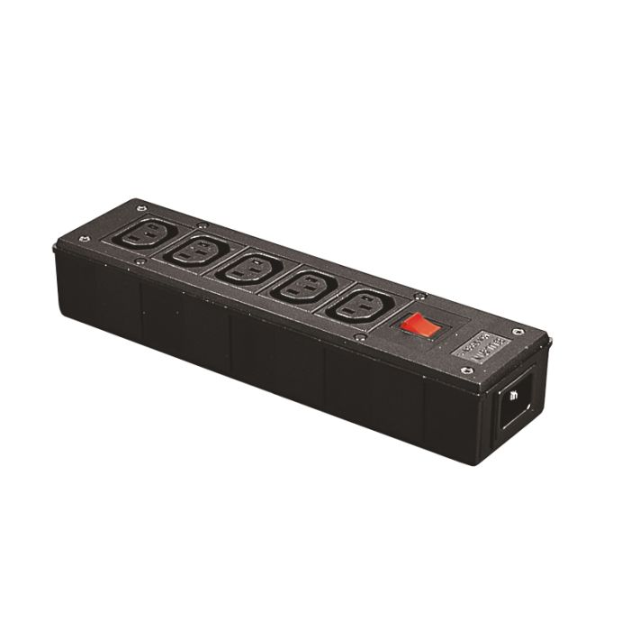 Box Style Rectangular IEC Distribution Unit PXD301 Range EN60320 Inlet 5 Shuttered Outlet Red Illuminated Switch EMI Filtered